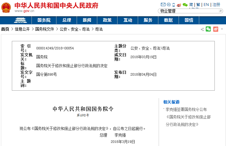 一、對18部行政法規的部分條款予以修改。